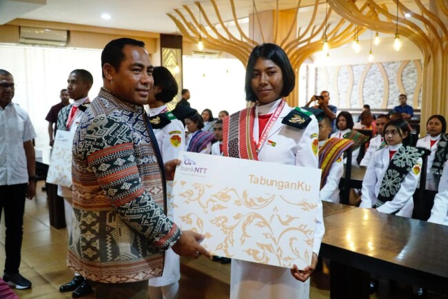 Kupang,HIC- Dukungan nyata Bank NTT kepada 44 anggota paskibraka tingkat Provinsi NTT tahun 2025 bukan sekedar slogan namun Rp 1.000.000 per orang menjadi misi nyata yang dilakukan bank NTT kepada 44 calon pemimpin masa depan daerah ini.