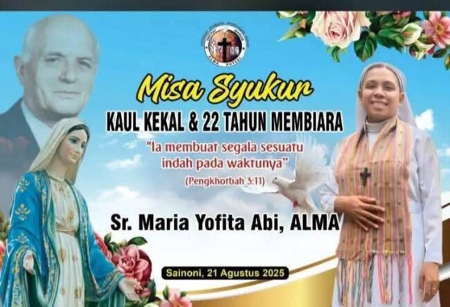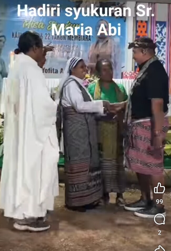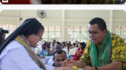 Kefamenanu, HIC – Bupati Kabupaten Timor Tengah Utara ( Kab. TTU), Yosep Falentinus Delasalle Kebo, SIP, MA menghadiri kegiatan iman misa syukur kaul kekal dan 22 tahun hidup membiara Sr. Maria Yovita Abi, ALMA di Desa Sainoni, Kecamatan Bikomi Utara, TTU. Kamis, (21/8/2025).